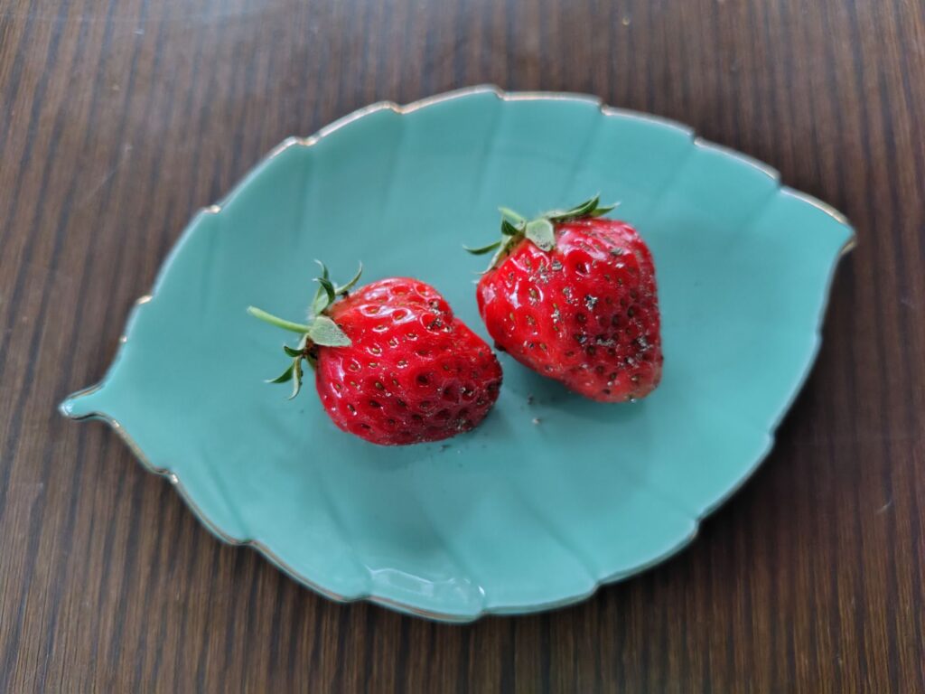 noboさんと、1個ずつ分けっこ。甘味は少ないけど、ちゃ~んとイチゴの味がしました🍓