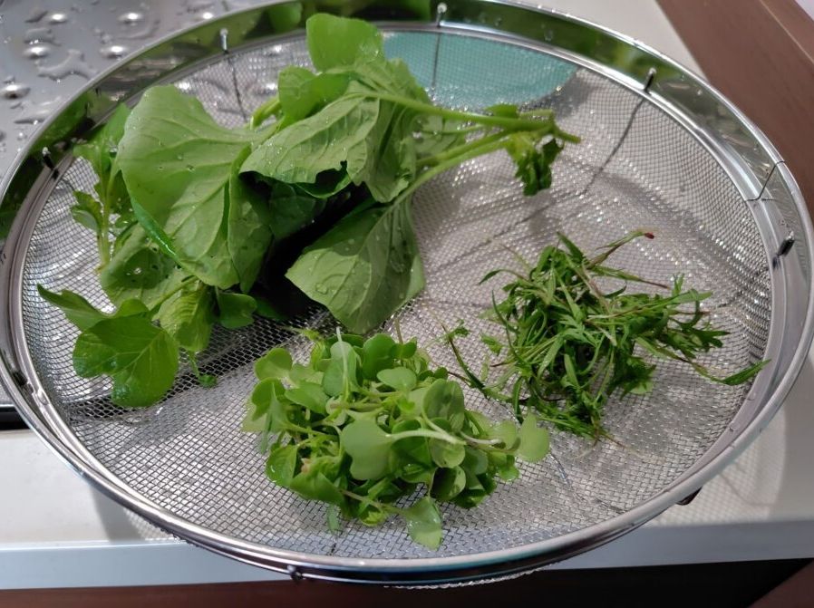 涼しくなったおかげか、noboが育ててくれている野菜たちも、日々育っています。間引いたすぐり菜、新鮮で柔らかくて美味しいです。
