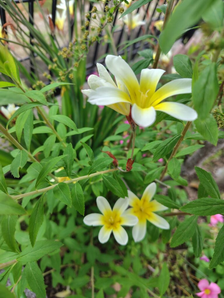で、家に帰ってから、家の庭の花をグーグルレンズで調べたら、やっぱり「スパラキシス」と、出ました。↓