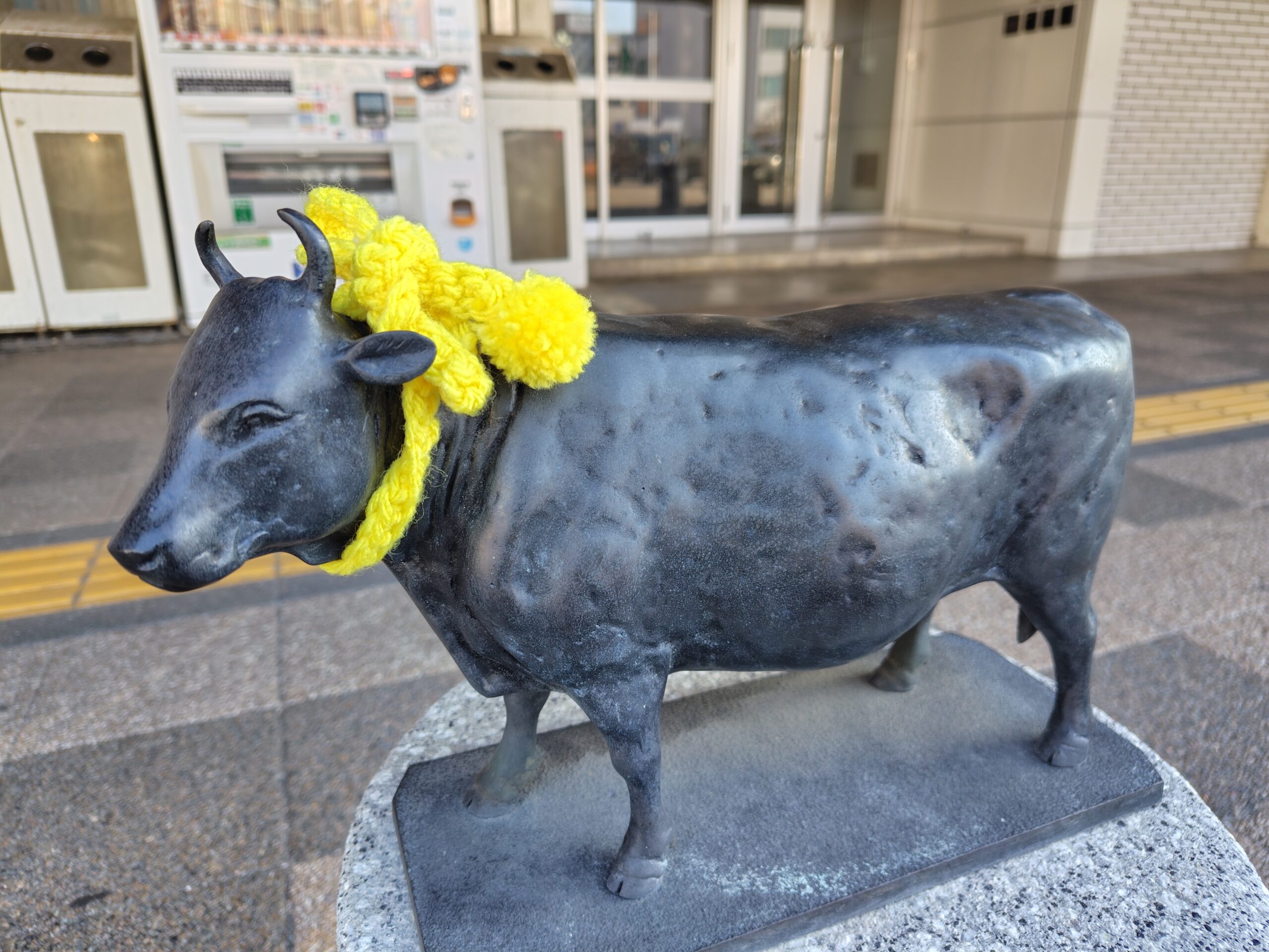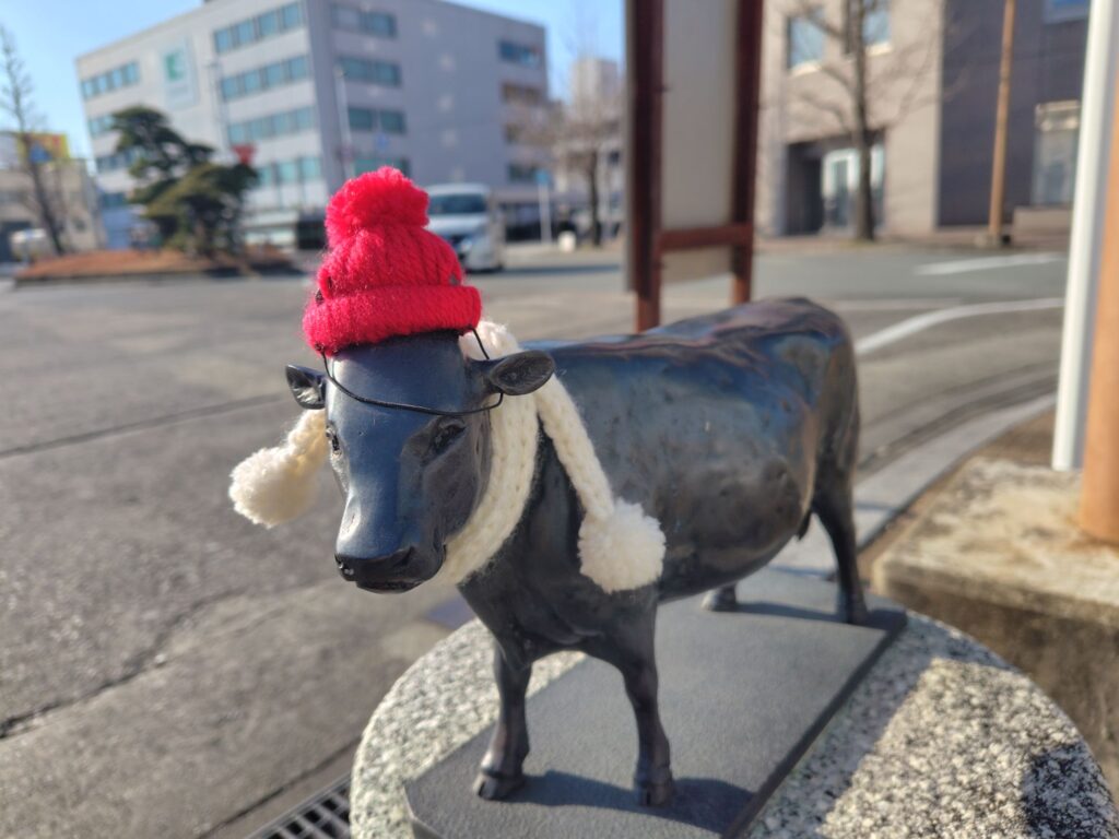 朝、noboさんを駅まで送ったら、牛さんも冬支度をしてました。かわいい❣️