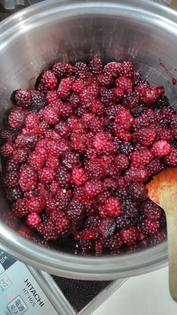 7月収穫時に作ったジャムが無くなったので、今日は冷凍ブラックベリーを使ってジャムを作りました。