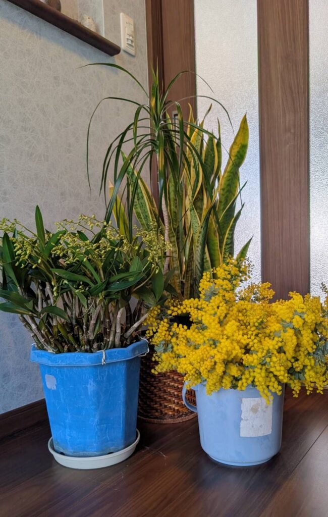 我が家のミモザの花束は、まだバケツの中です。これはこれで、いいかなぁ~って、そのままになってます😉