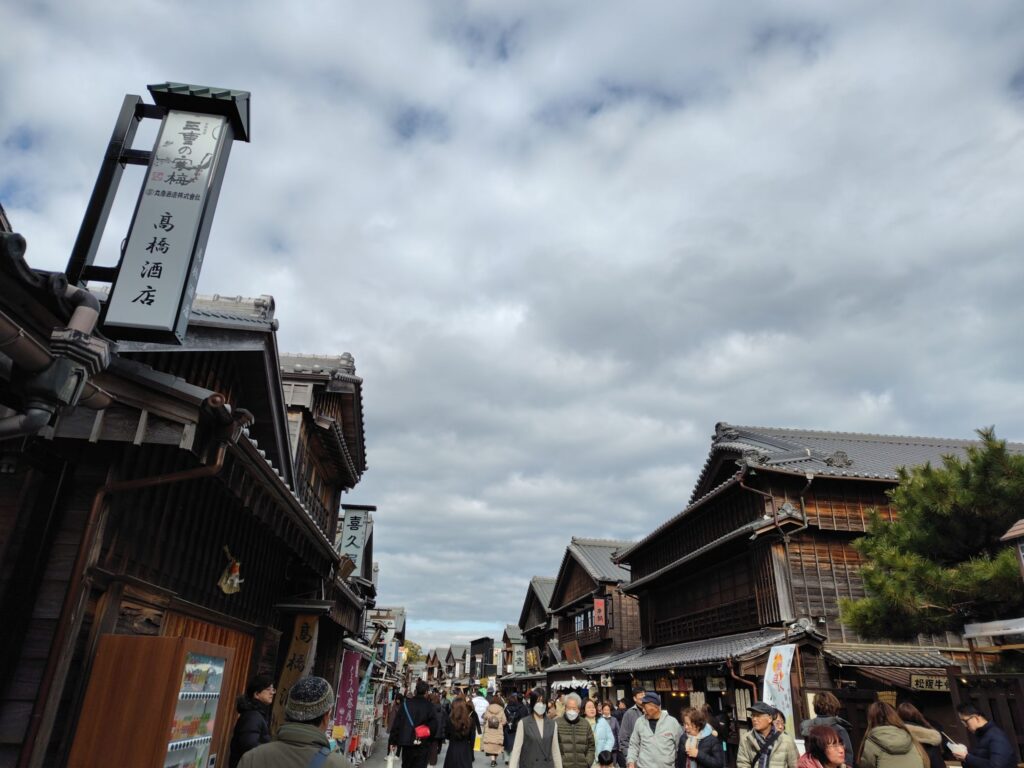 皇太神宮(内宮)参拝を終え、「赤福ぜんざい」でホッコリあったまって、また外宮まで歩いて戻りました。
