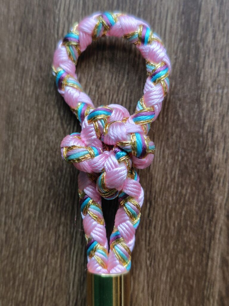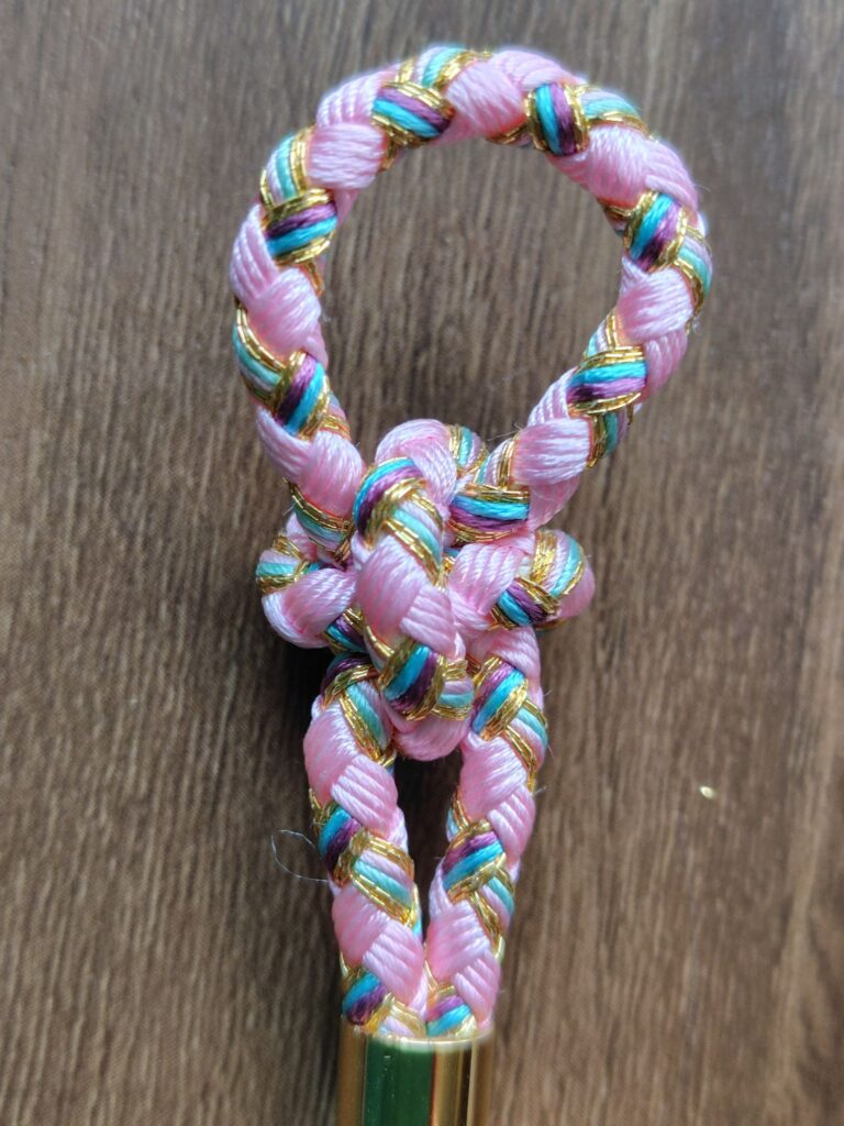縁起の良い「叶結び」という結び方で、結び目の裏表が「口」の字と「十」の字になっていて、合わせると「叶」という漢字になることから「叶結び(かのうむすび)」と言われているそうです。