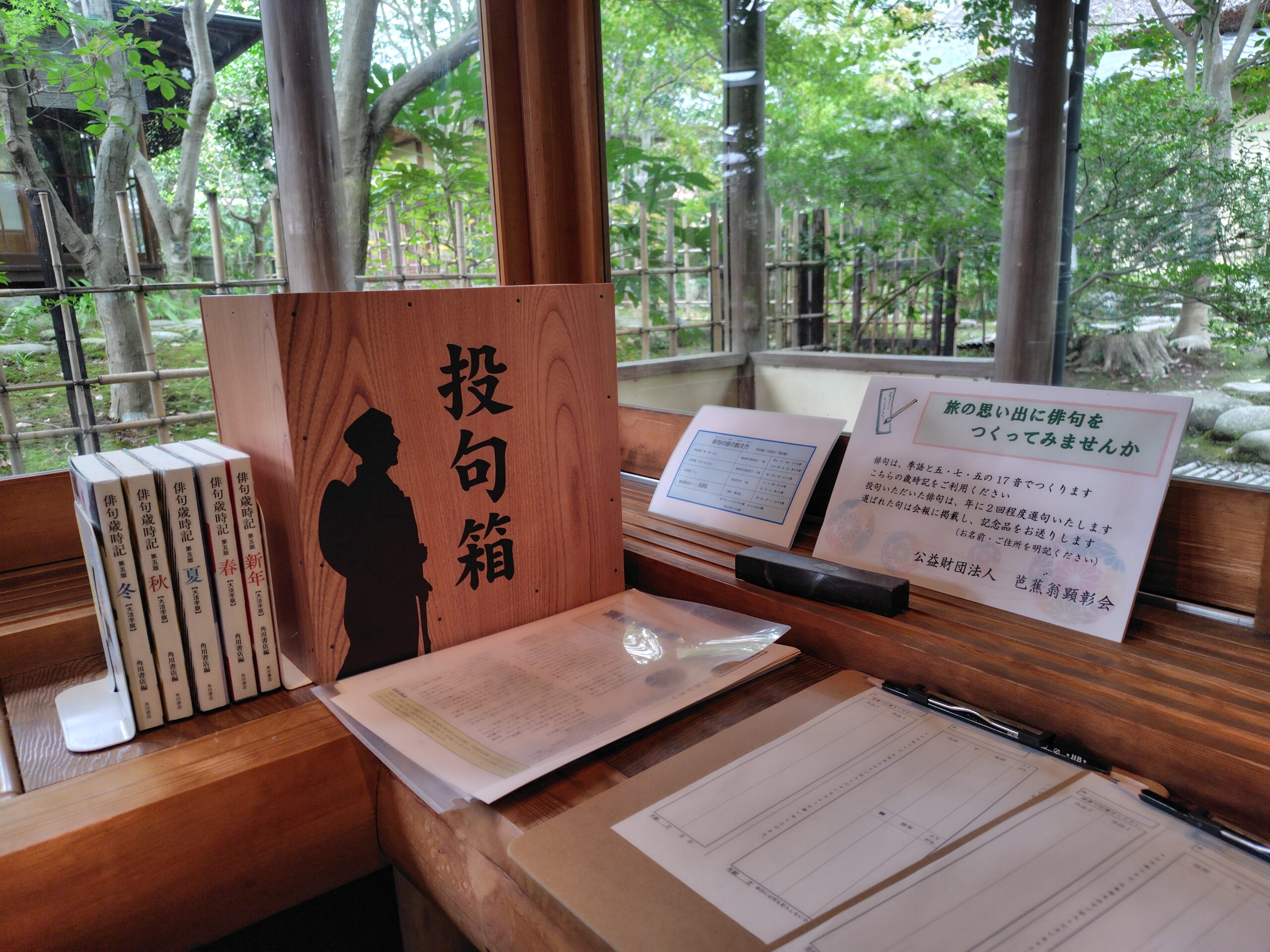 松尾芭蕉関連施設では、必ず投句箱が置かれていました。ここで一句詠めるといいのですが・・・。残念ながら才能なし!