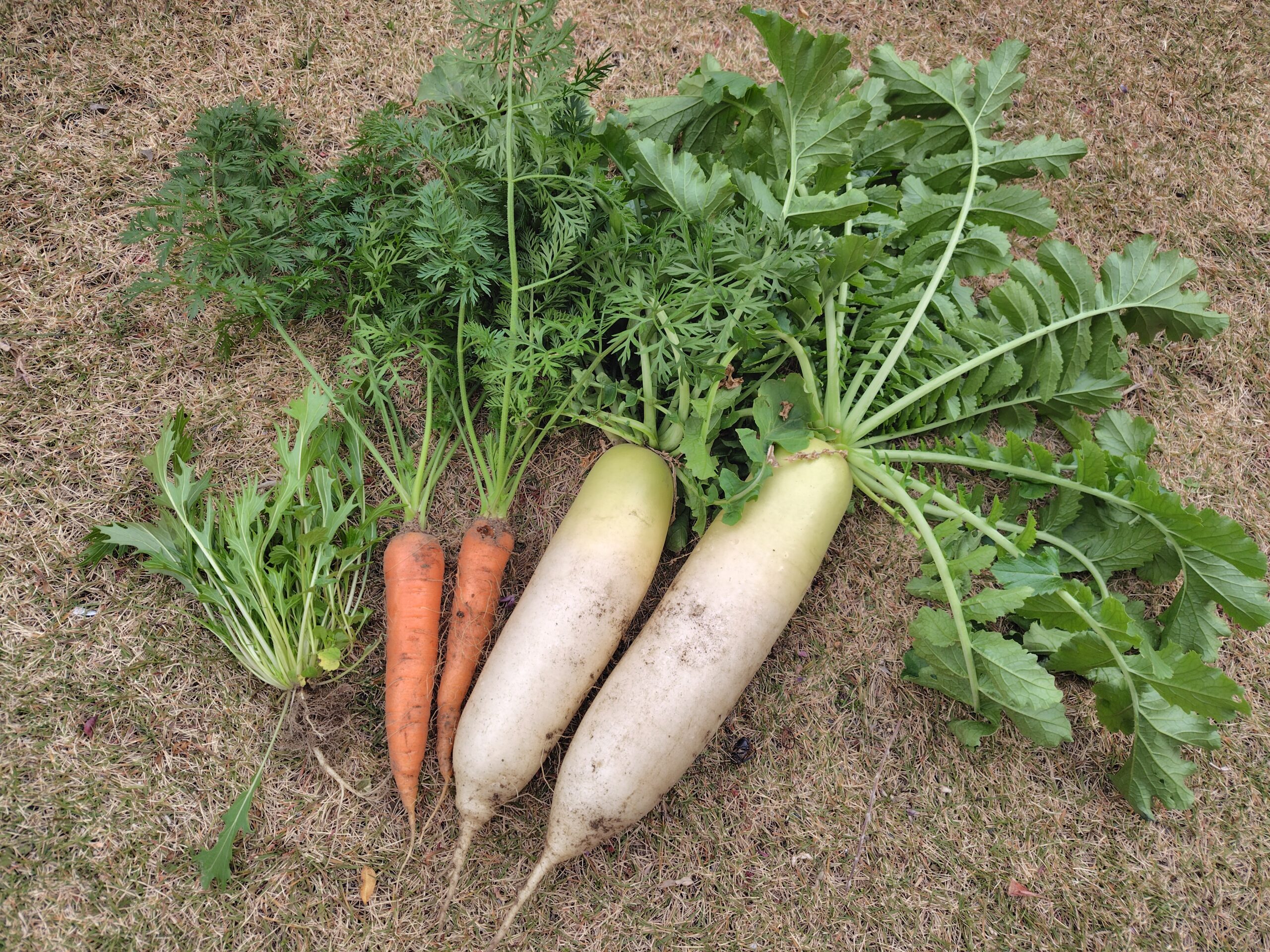大根、人参、水菜が収穫できました。