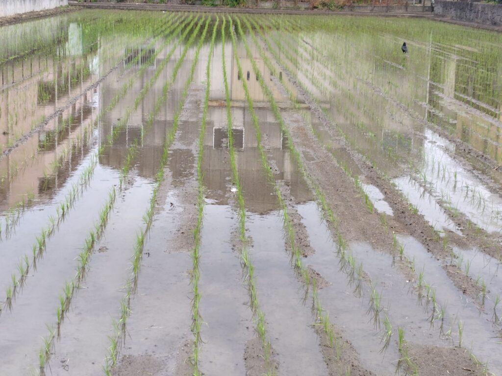 田植えが終わった、この田んぼの苗たちも喜んでいることでしょう。↓