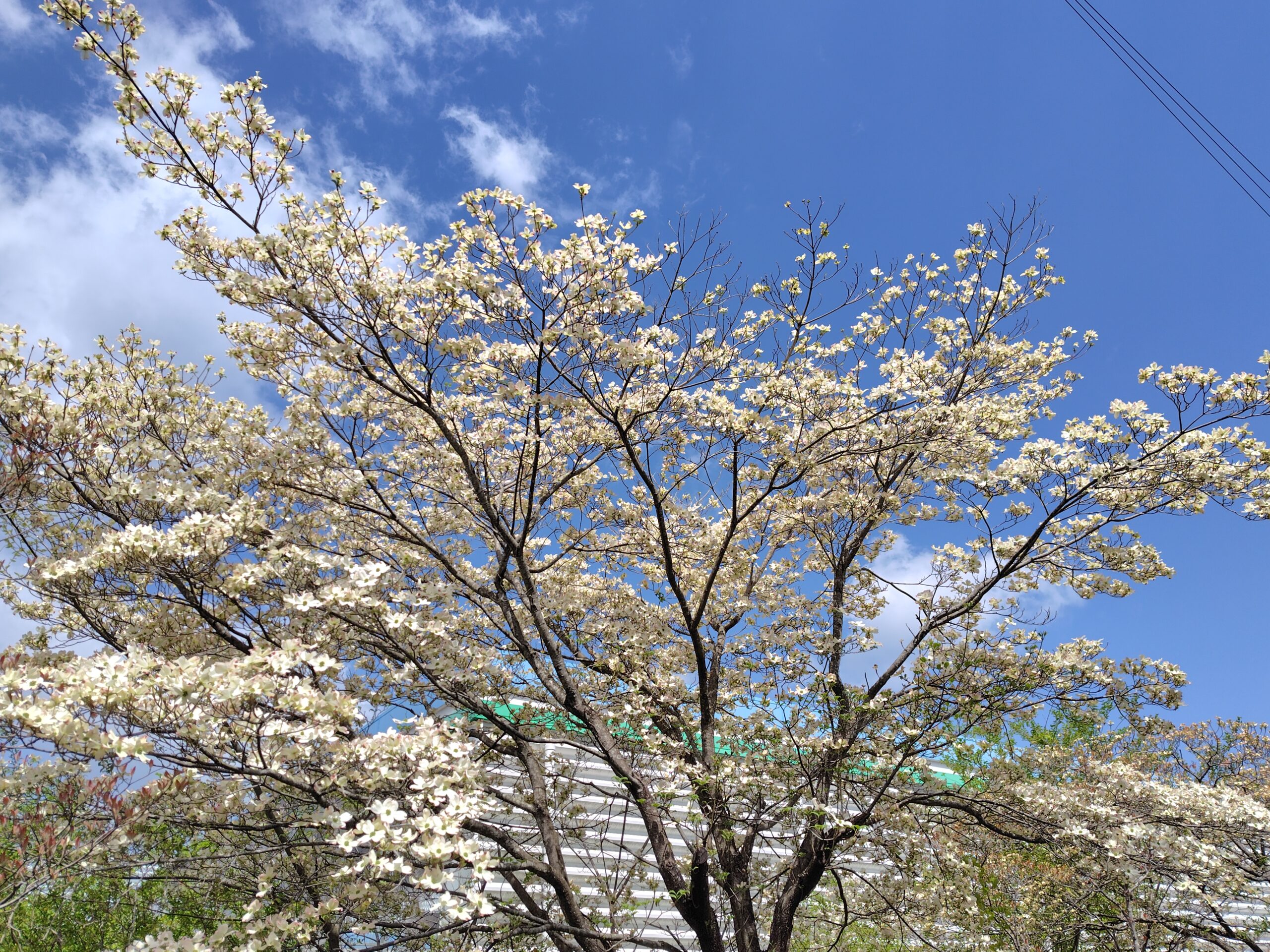 ハナミズキが、どんどん花を咲かせています ↑