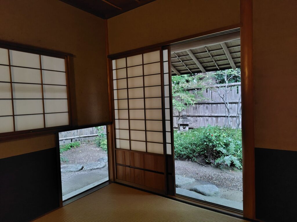 かがまないと茶室に入れない小さい入り口は、帯刀したままでは入れないように、敢えて小さくなっているそうです。↓