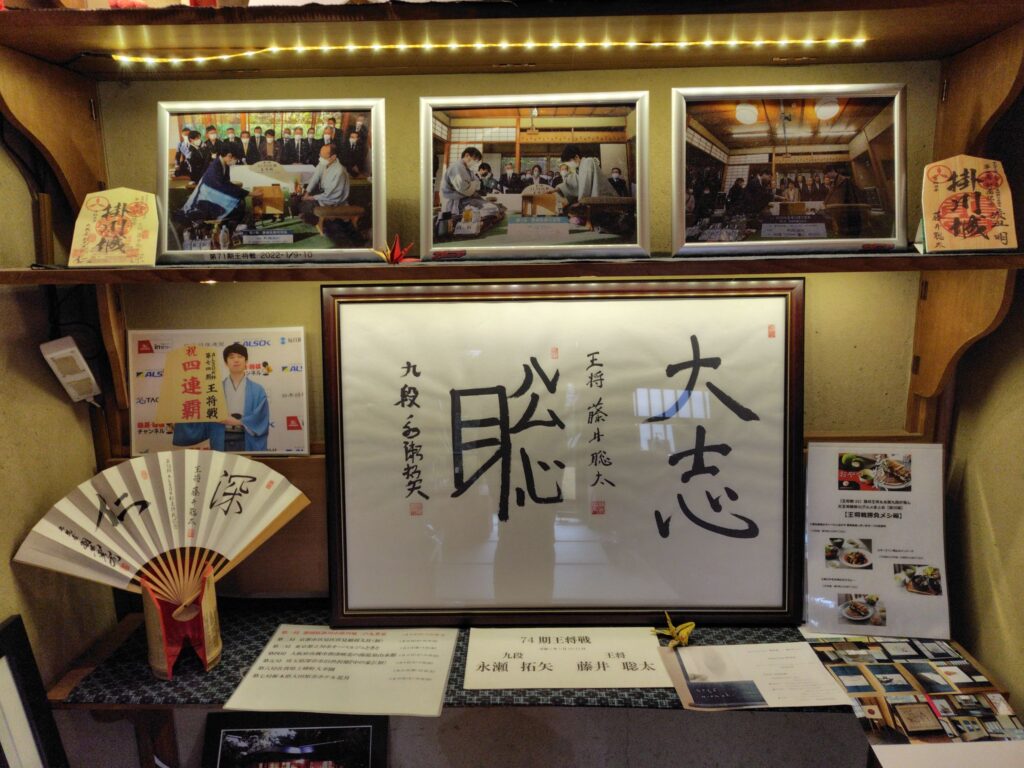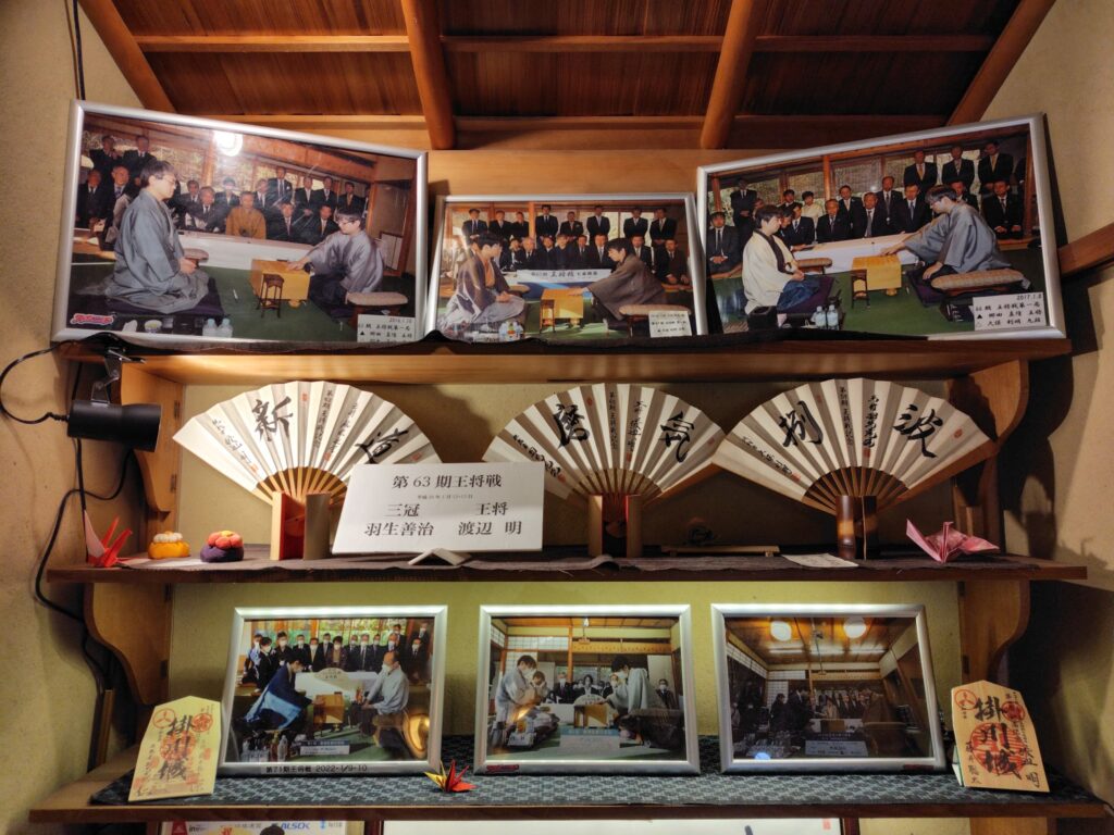 お茶をいたたいた広間は、今年の1月に、74期王将戦が行われた会場です。