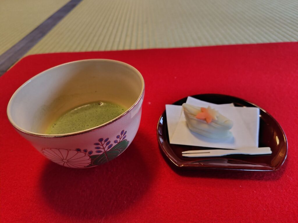 掛川市は有名なお茶どころですから、尚更のこと外せません。掛川城に行く前に「二の丸茶室」でお茶をいただきました。