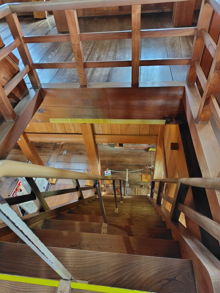 天守閣への急勾配の階段 下りがこわい