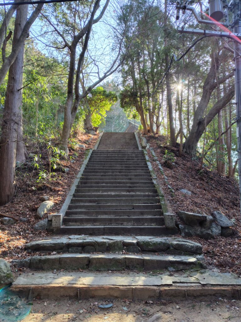 表参道の階段は、けっこう急な所もあり、ひたすらひたすら登ります。五百数十段あるそうですが、私にはもっとあるように感じました。