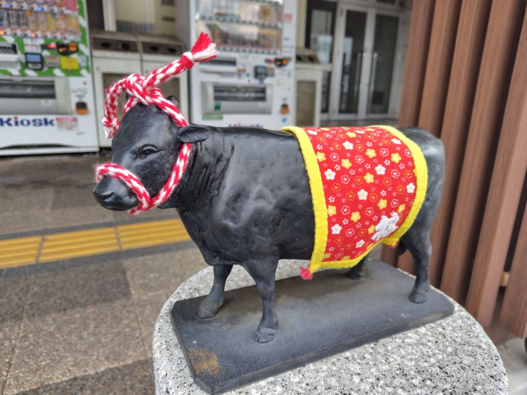 松阪駅の牛さんも、お正月らしく、 おめかししていましたよ。 ↑ ↓