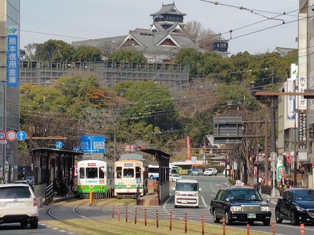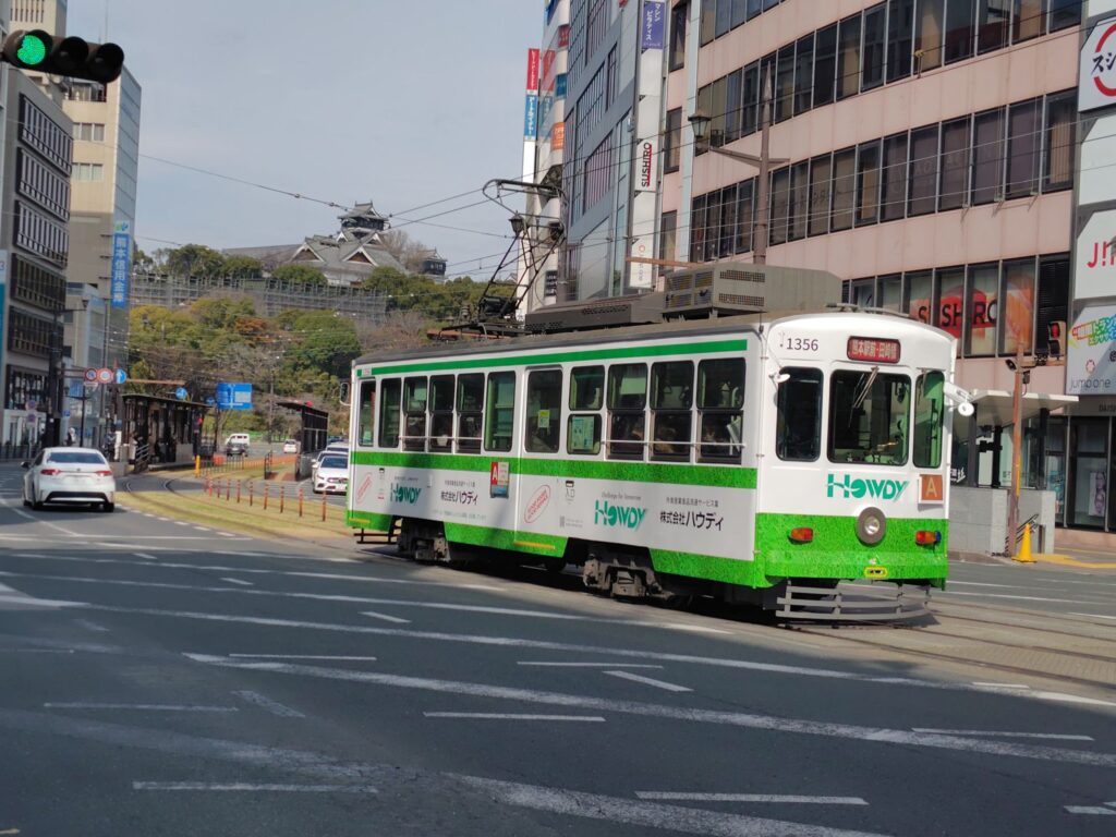 ☆ホテルを出発して、まずはコインランドリー。洗濯の間、歩いて買い物に、熊本市電の通りも歩きました。↓