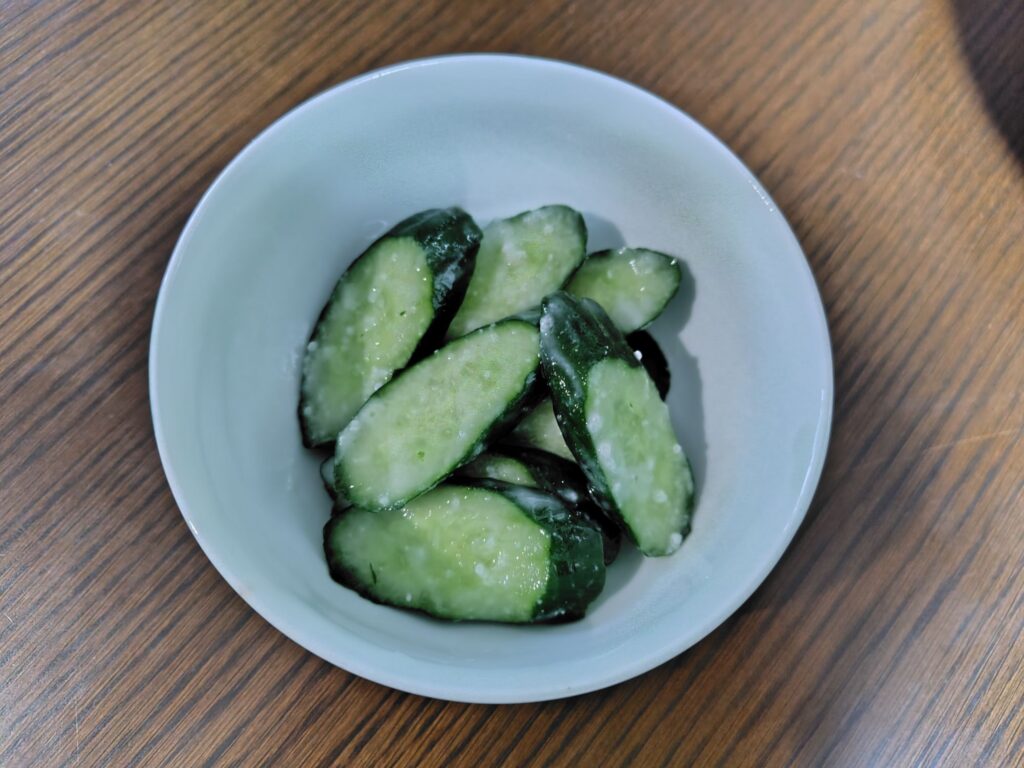 塩麹をまぶしただけの、キュウリの浅漬けも好きです。