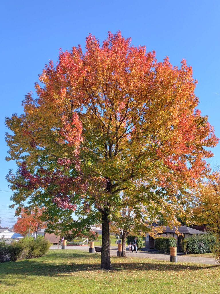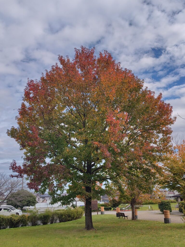 たった4日なんですが…先日(12日)の宝塚古墳公園の紅葉がずいぶん鮮やかになっていました。