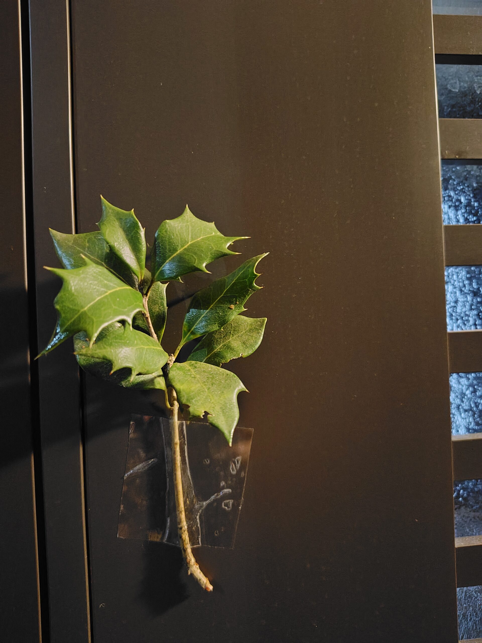 本当は、イワシの頭をヒイラギに刺すんだけど、すぐにカラスが来ちゃうので、ヒイラギだけで鬼さんから守ってもらいます(アツカマシイ😅)