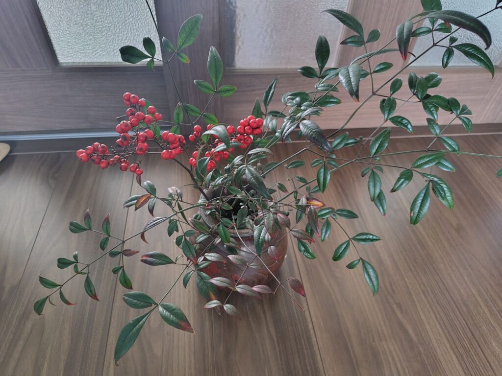 同じく我が家の庭の南天 ↓ を、