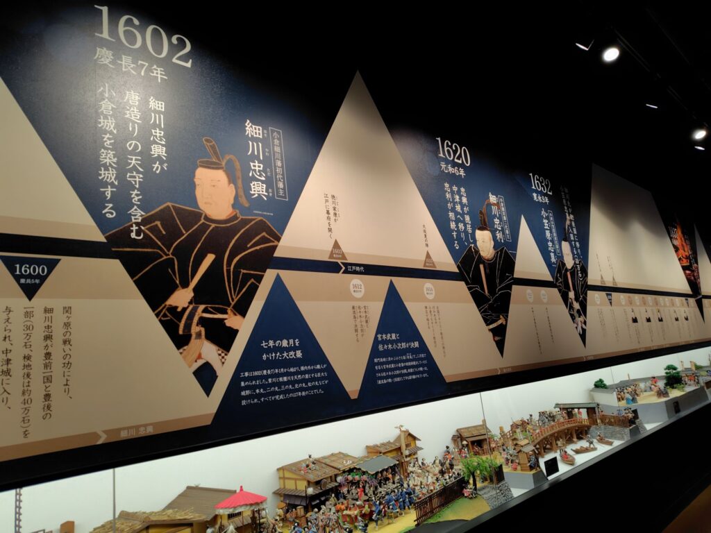 1569年中国地方の毛利氏が、この地に城を築いたことが始まりで、その後、関ヶ原の戦いで功績を挙げた細川忠興が初代藩主となり、1602年に本格的に築城を開始したとのことです。